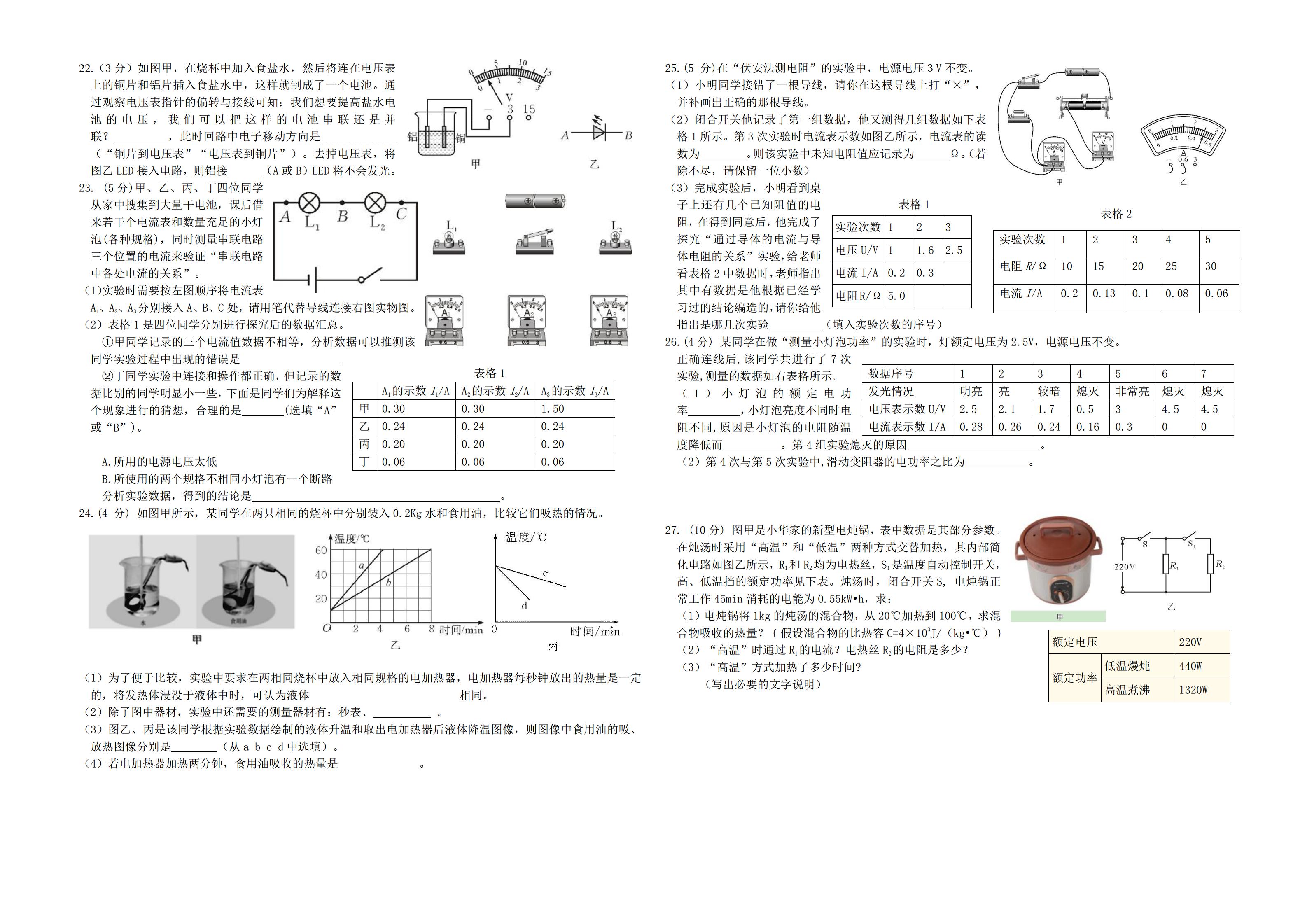 - 8 武汉市江夏区2024-2025学年上学期10月九年级理化试题(PDF版)