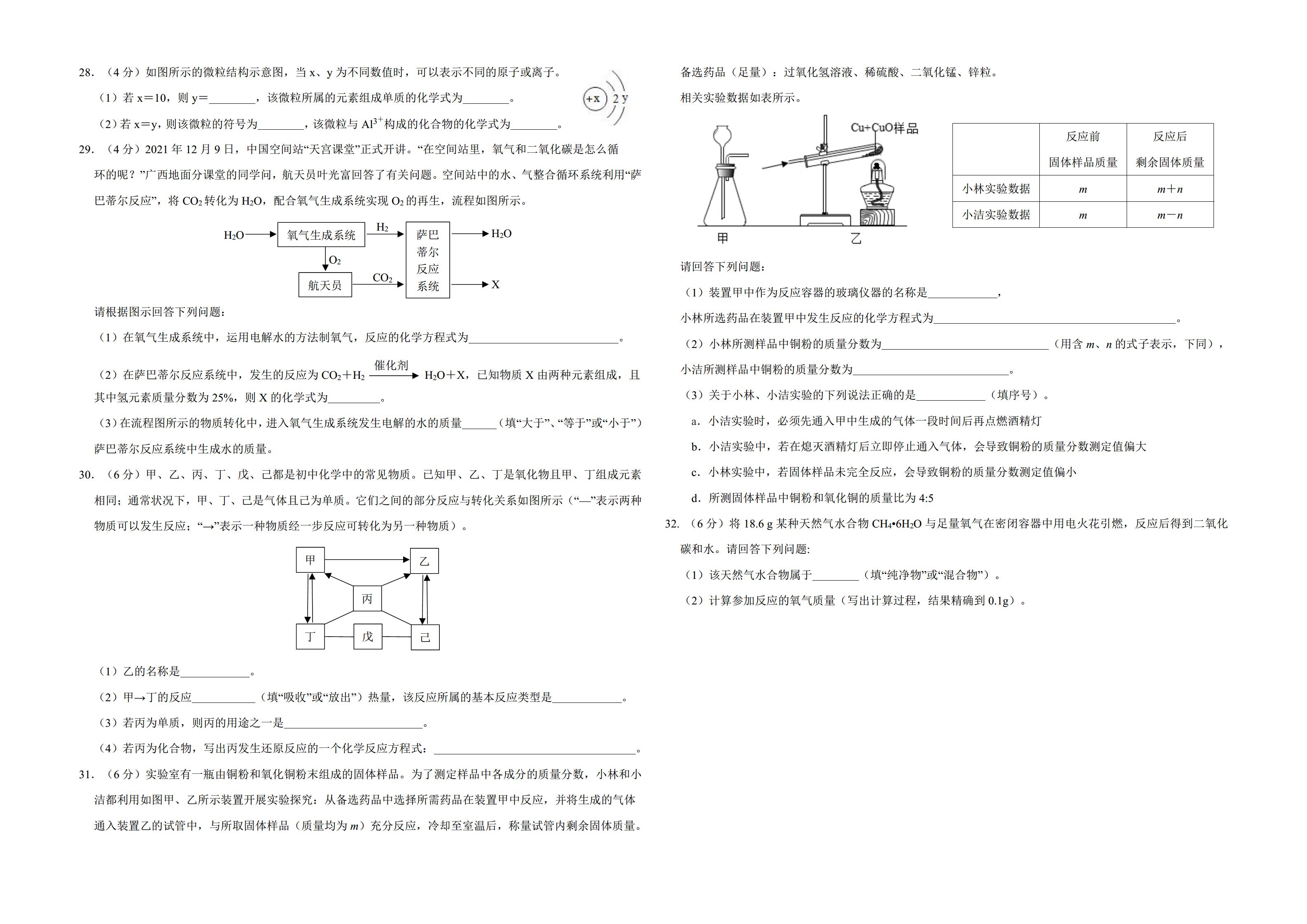- 7 武汉市江夏区2024-2025学年上学期10月九年级化学参考答案