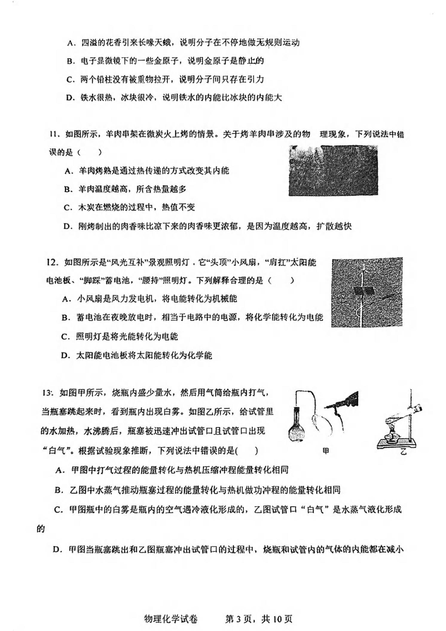 【免费】新洲区2025-2026学年上学期10月九年级理化试题(PDF版)