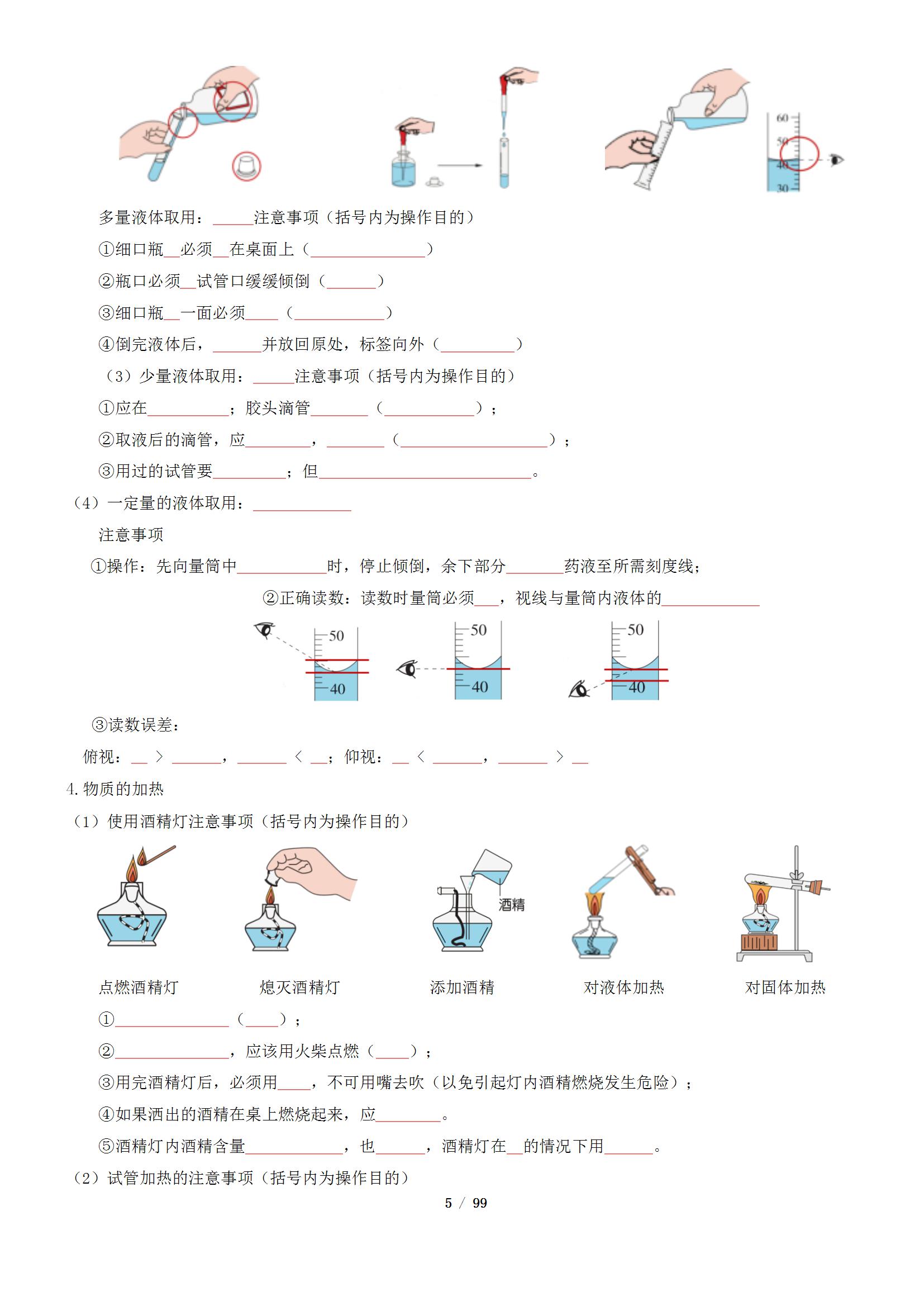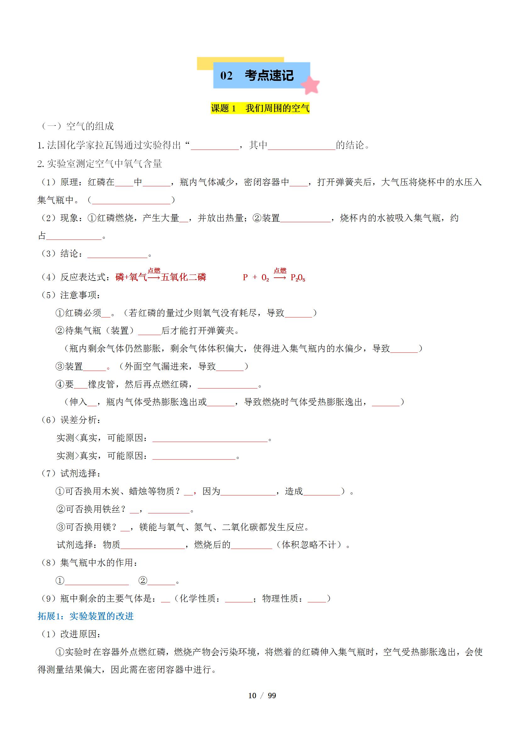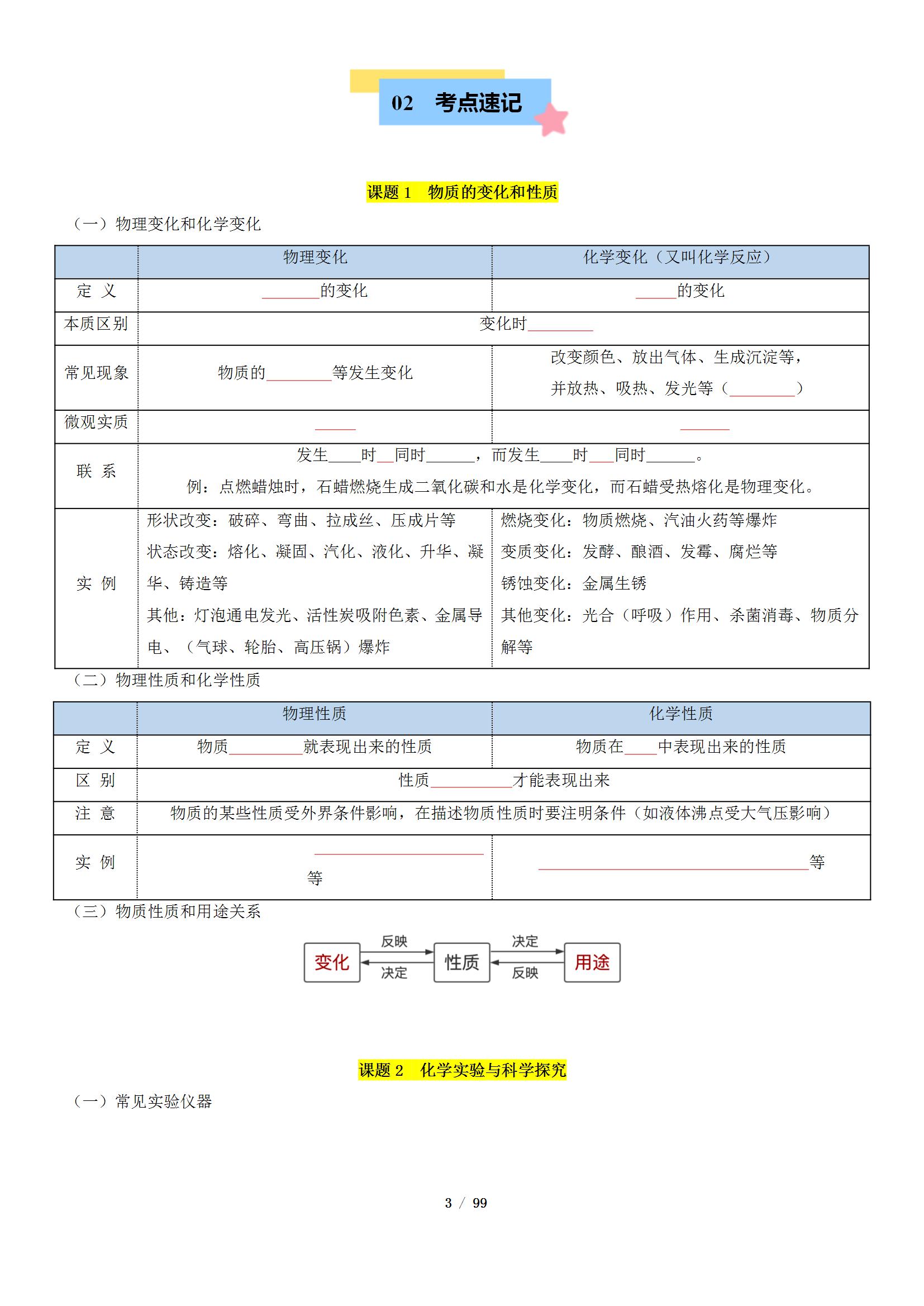 - 1 人教版2025年秋九上化学第1-7单元知识点清单-填空卷(word版含答案)