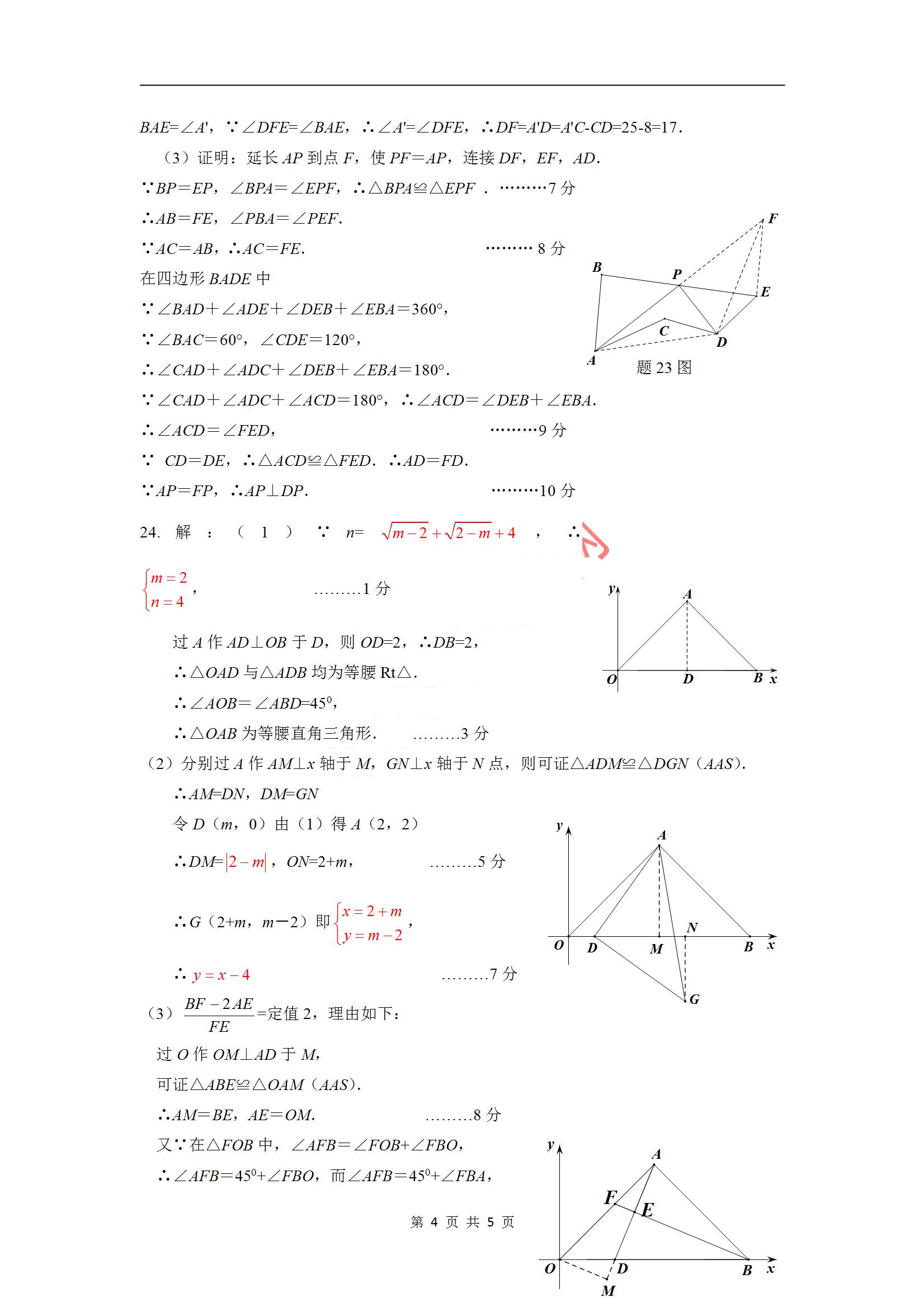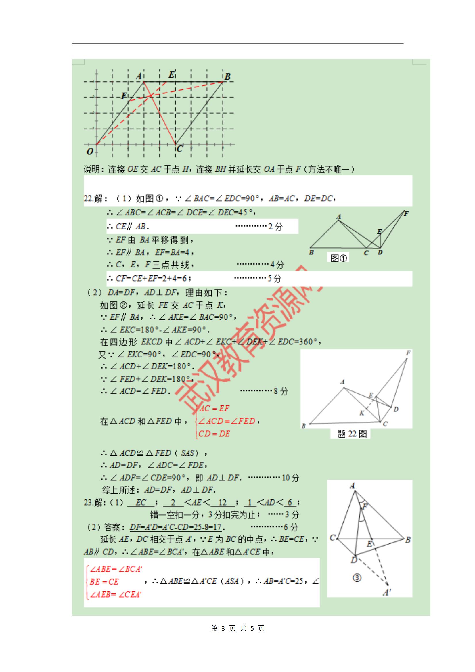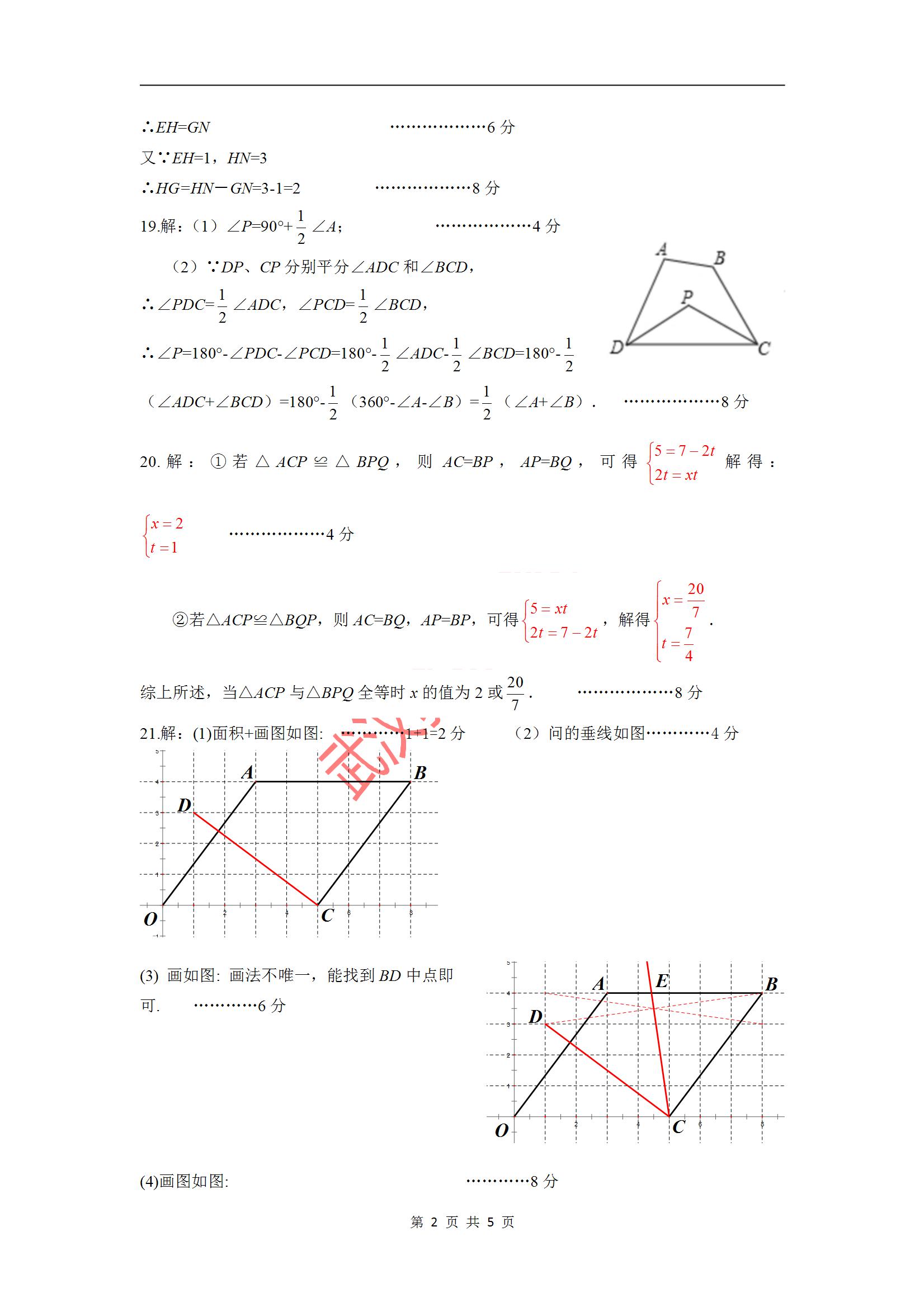 - 5 【免费】江夏、黄陂、蔡甸区2024-2025学年上学期期中八年级数学参考答案及评分标准