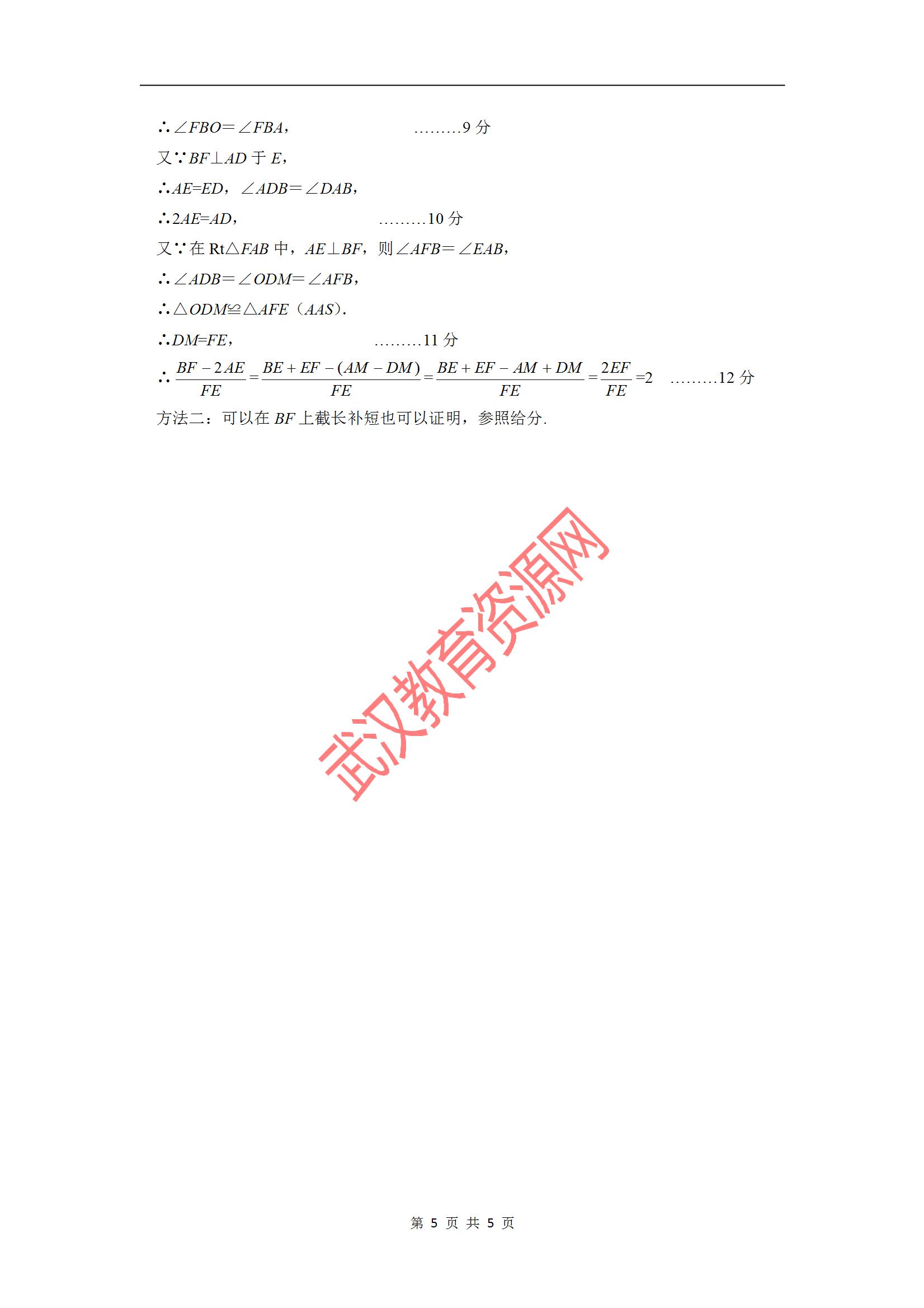 - 7 洪山区2024-2025学年上学期期中八年级数学参考答案及评分标准