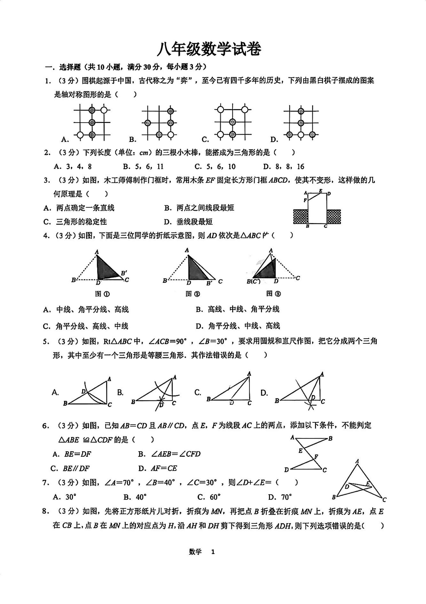 - 1 江汉区2025-2026学年上学期期中八年级数学试题(PDF版)