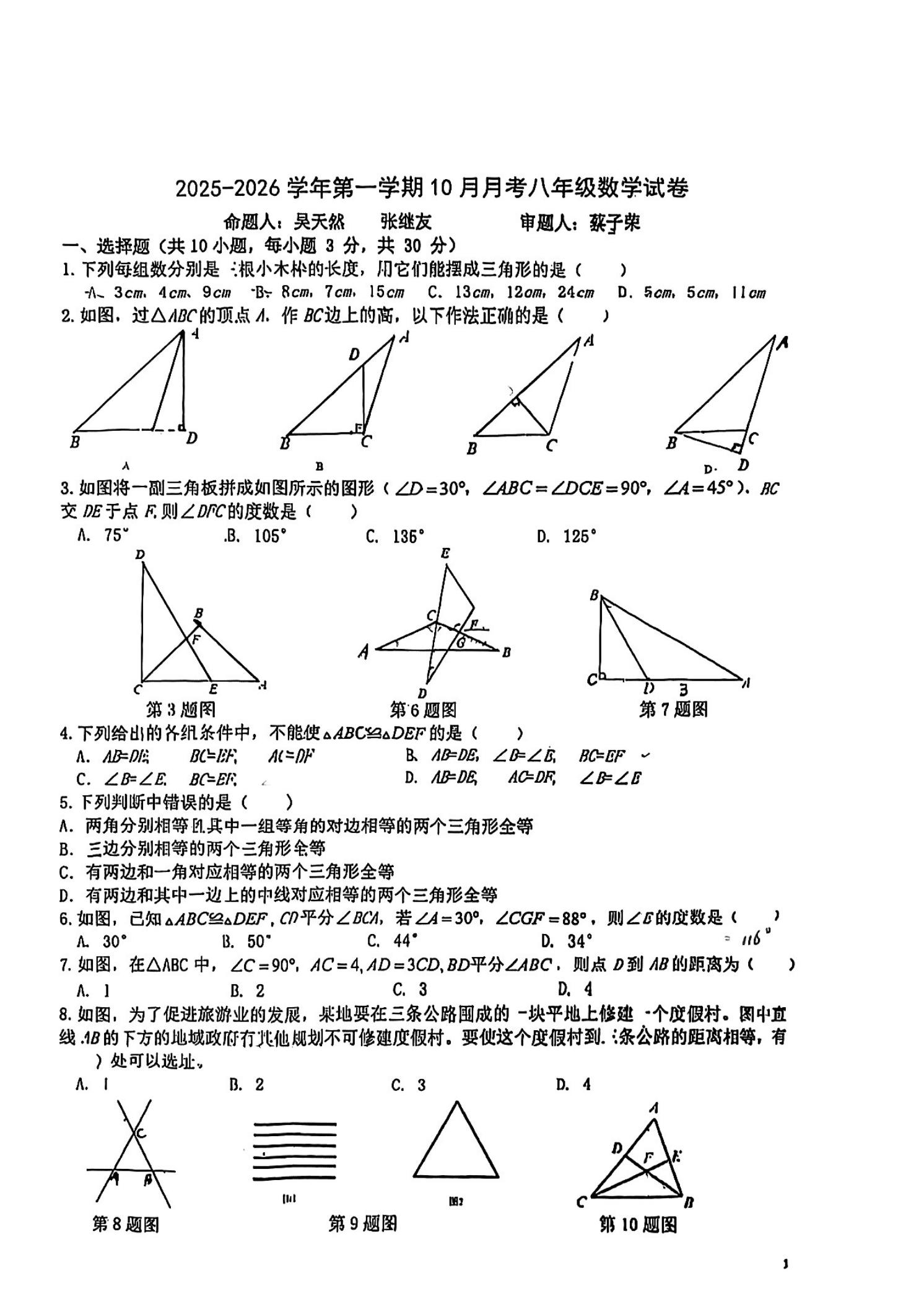 - 1 华一寄宿2025-2026学年上学期10月八年级数学试题(PDF版)