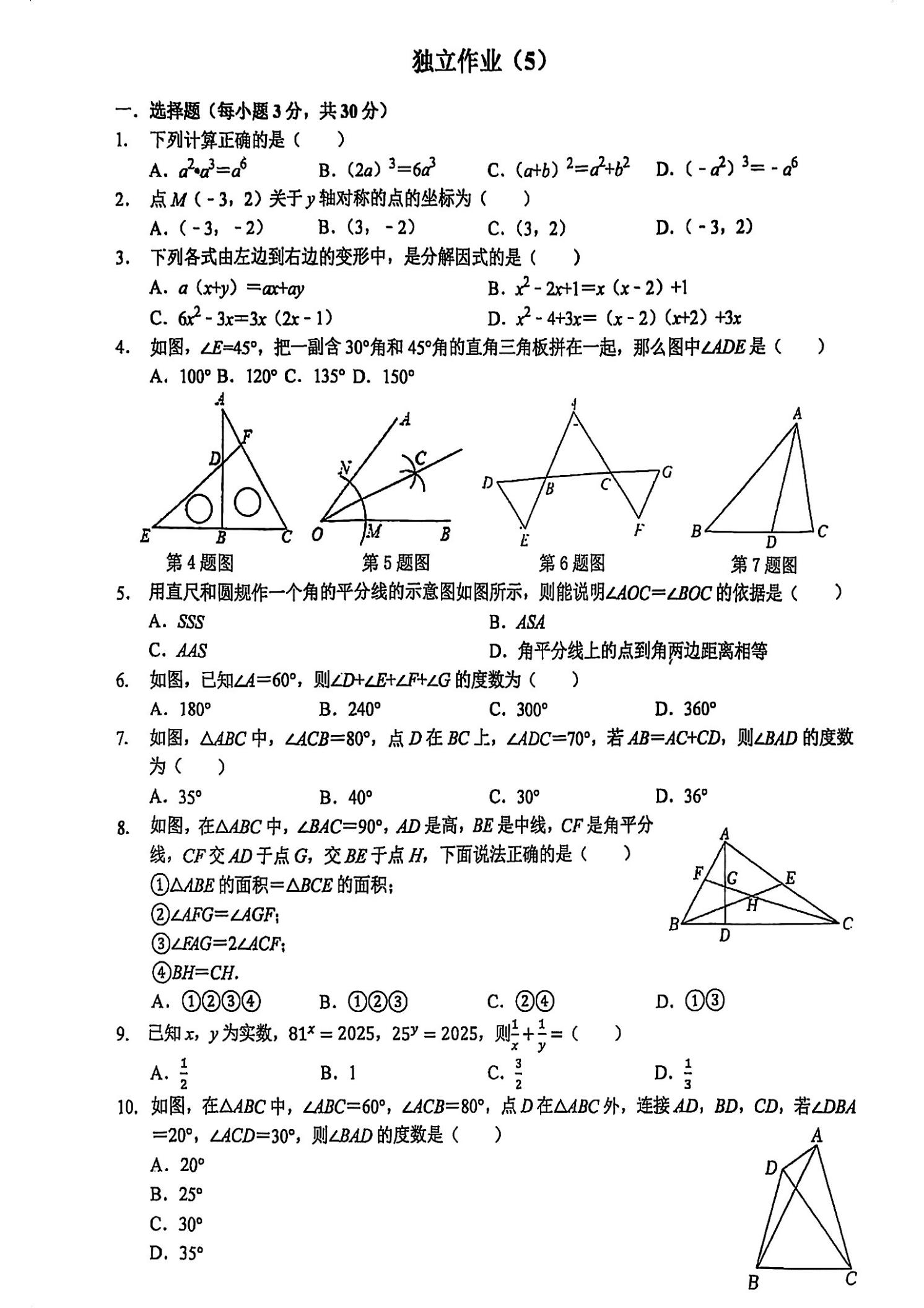 武汉外校2025-2026学年八上数学独立作业(五)(PDF版)