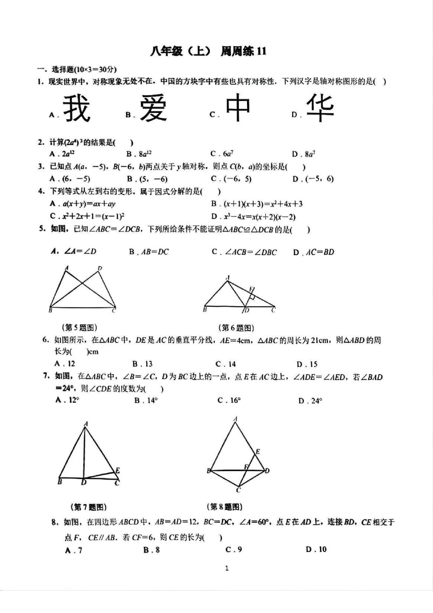 - 6 武汉市名校2025-2026学年上学期八年级数学周测(三)(PDF版)