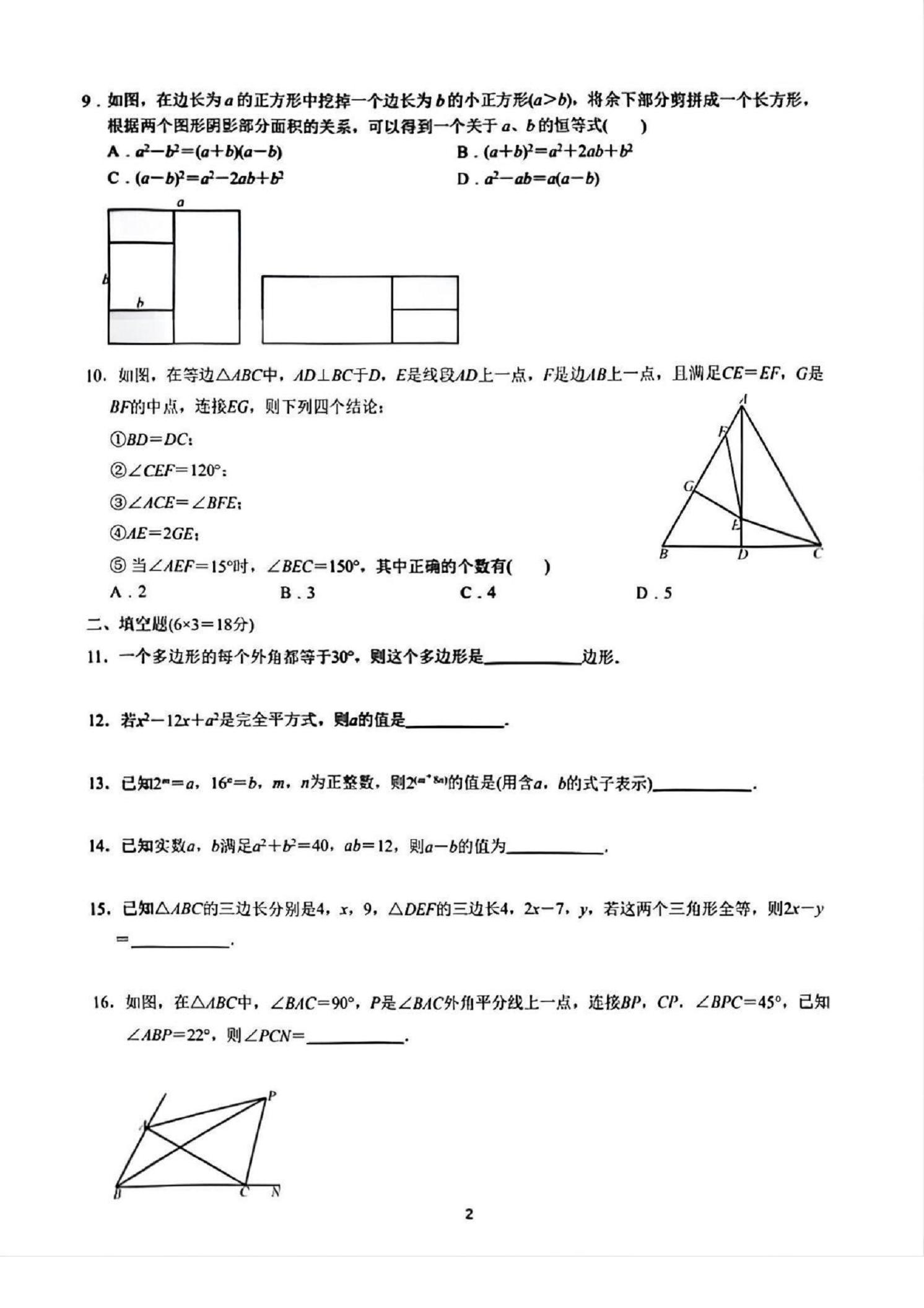 - 2 武汉市梅苑学校2025-2026学年上学期10月八年级数学试题(word版含答案)