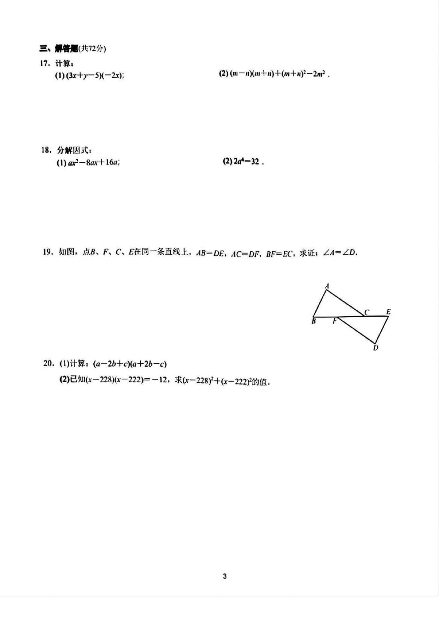 - 3 武汉市名校2025-2026学年上学期八年级数学周测(七)(PDF版含答案)
