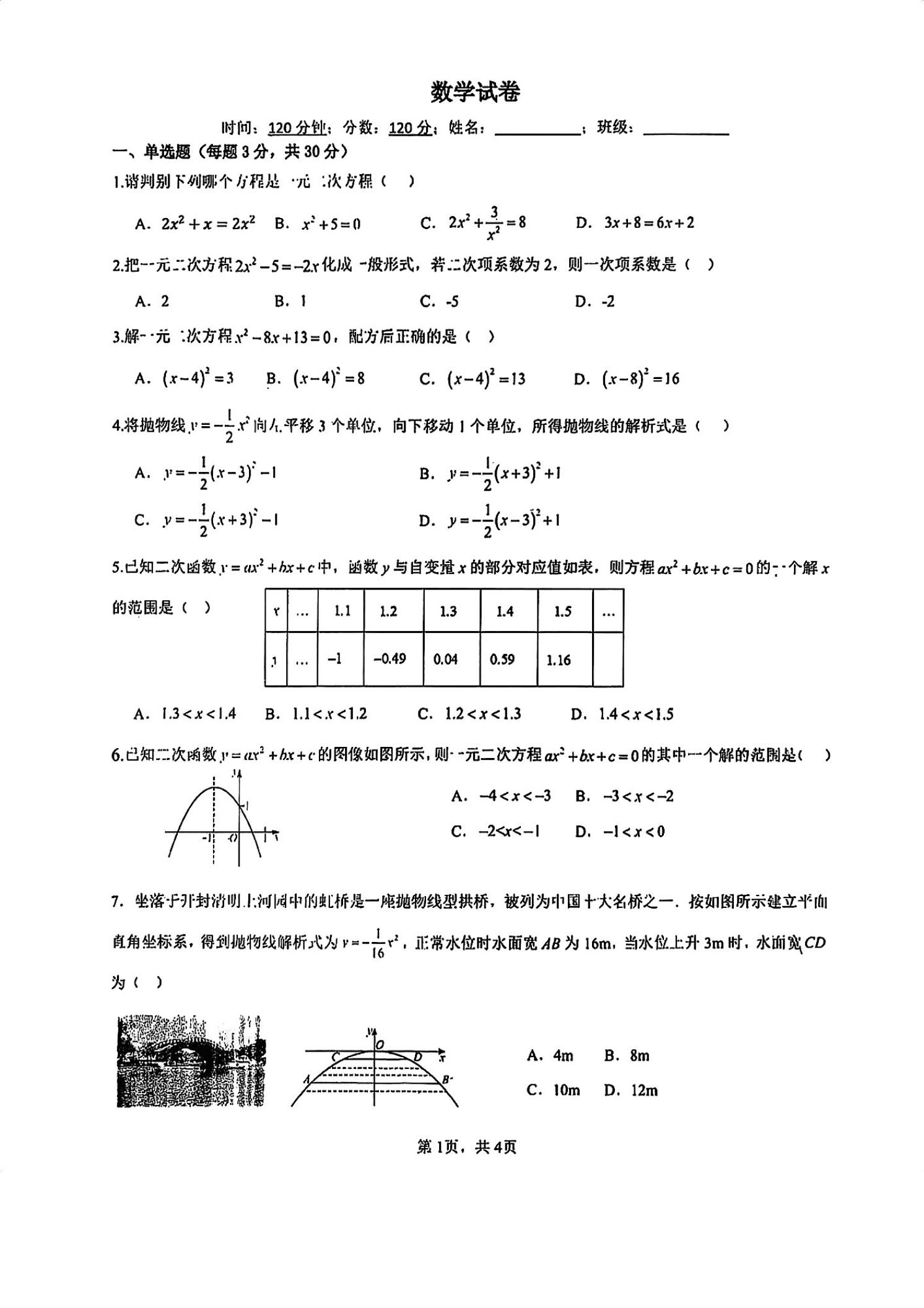 - 2 【免费】武汉市英格中学2025-2026学年度第一学期9月考九年级数学试卷(高清PDF版含答案)