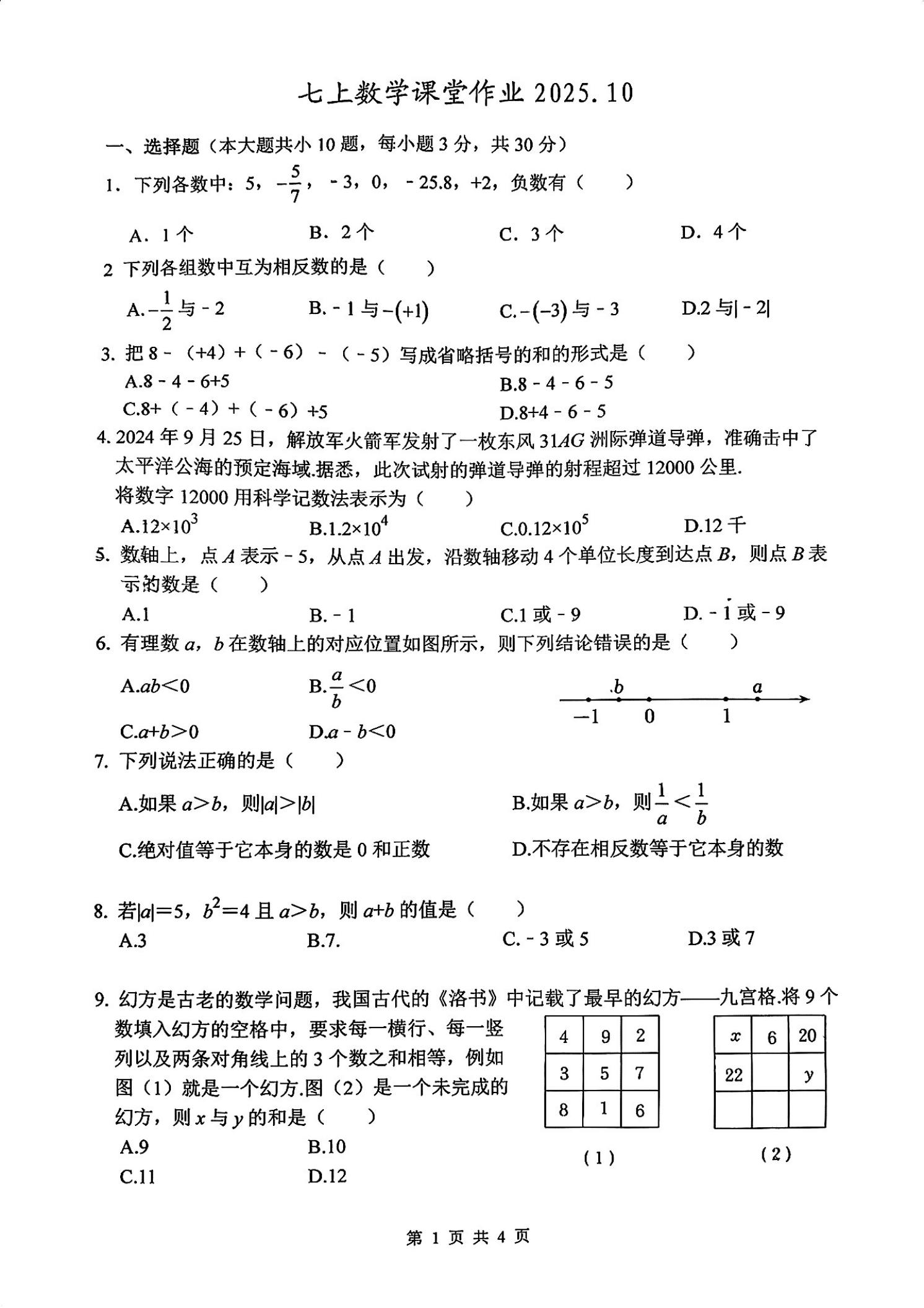 - 4 武汉外校2025-2026学年七上数学独立作业二(PDF版)