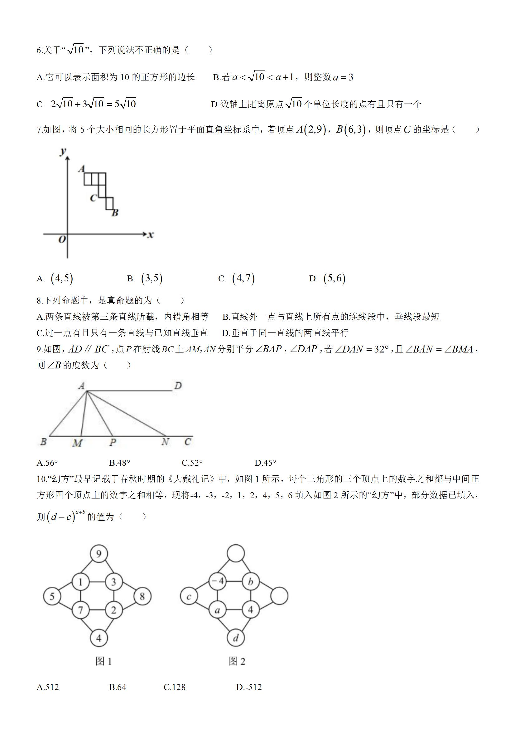 - 7 【免费】硚口(经开区)2023-2024学年下学期期中七年级数学试题(PDF版)