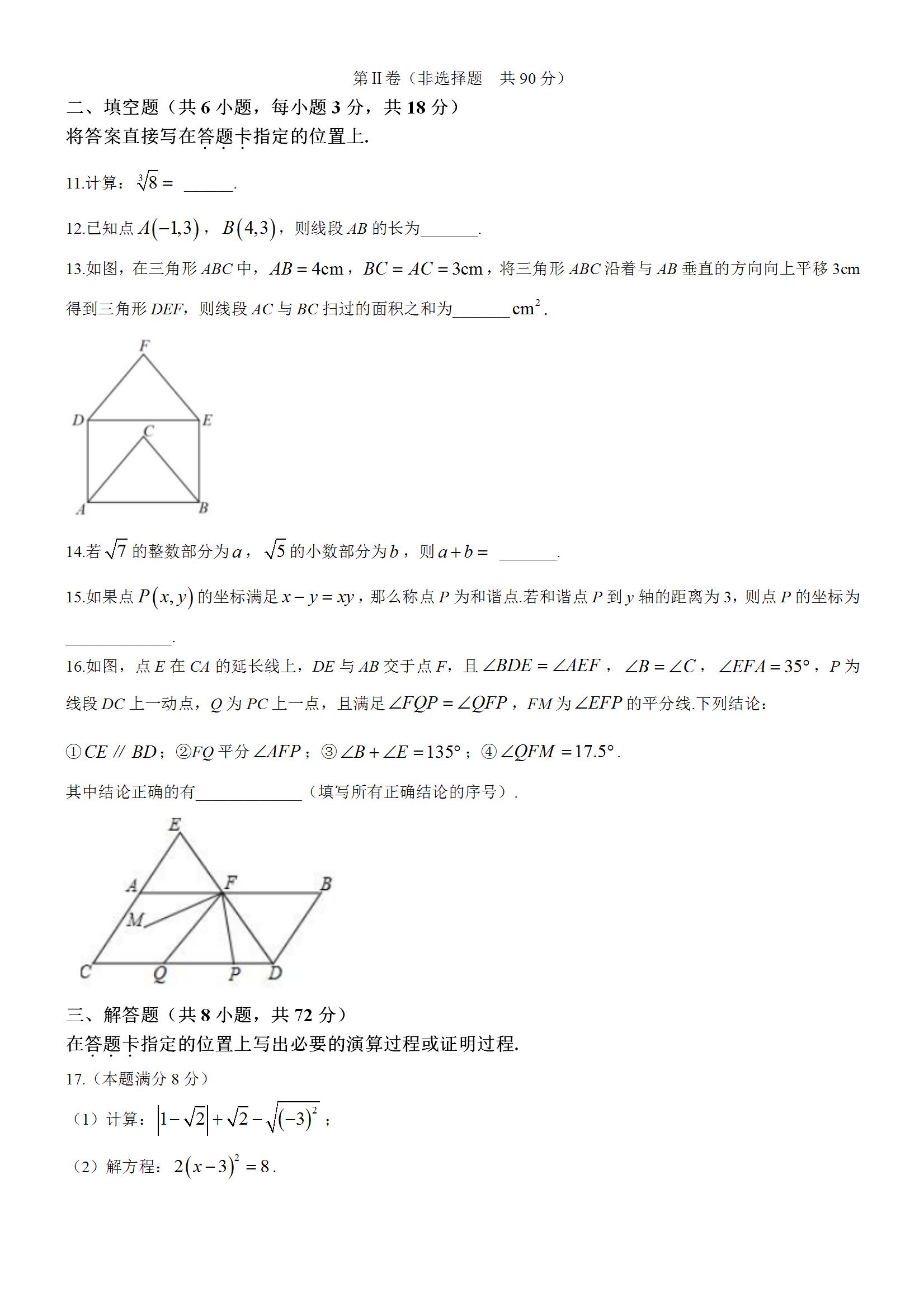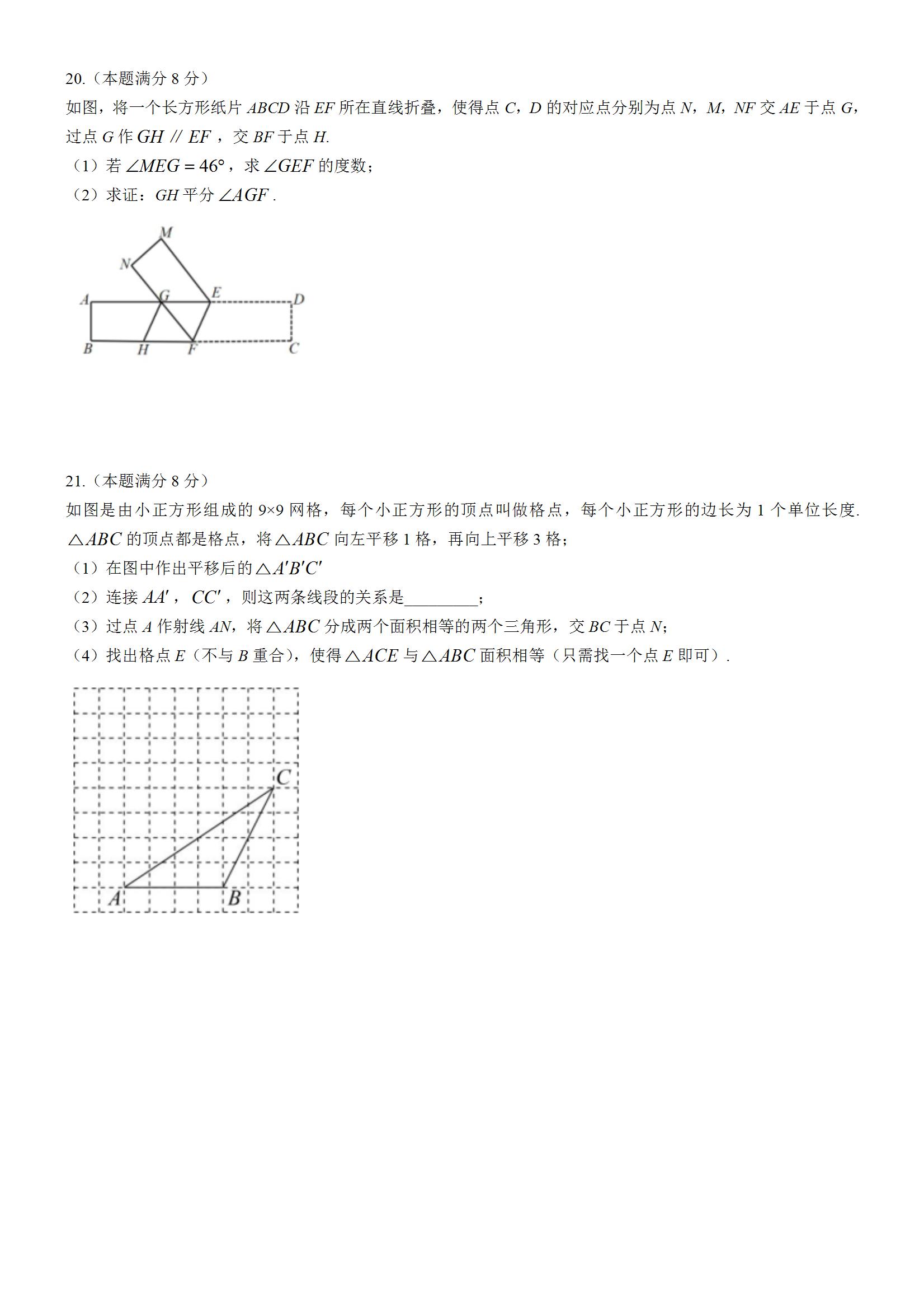 - 8 武汉市南湖中学2023-2024学年下学期期中七年级数学试卷(PDF版含答案)