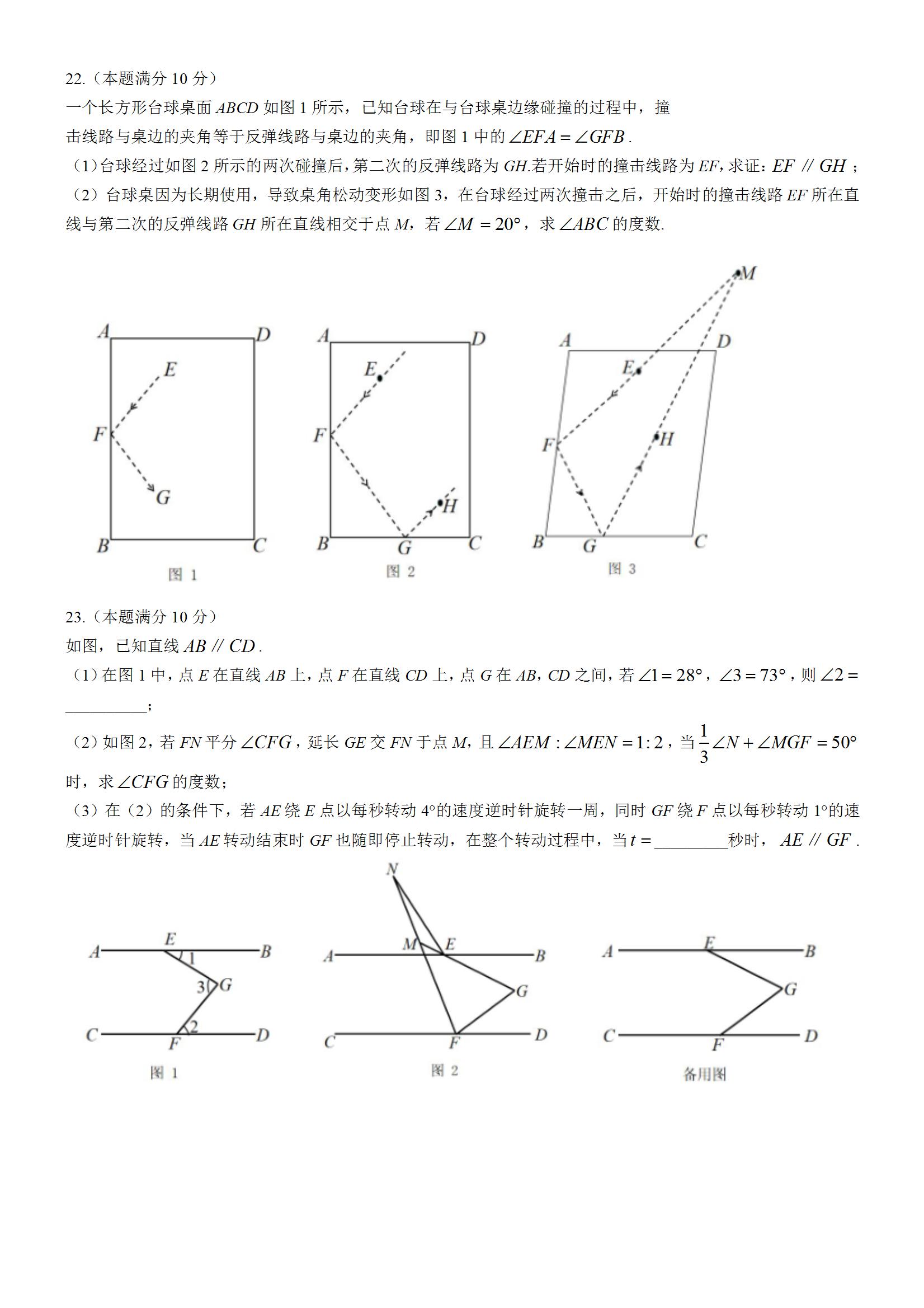 洪山区2022-2023学年第二学期期中质量检测七年级数学试卷(word版)
