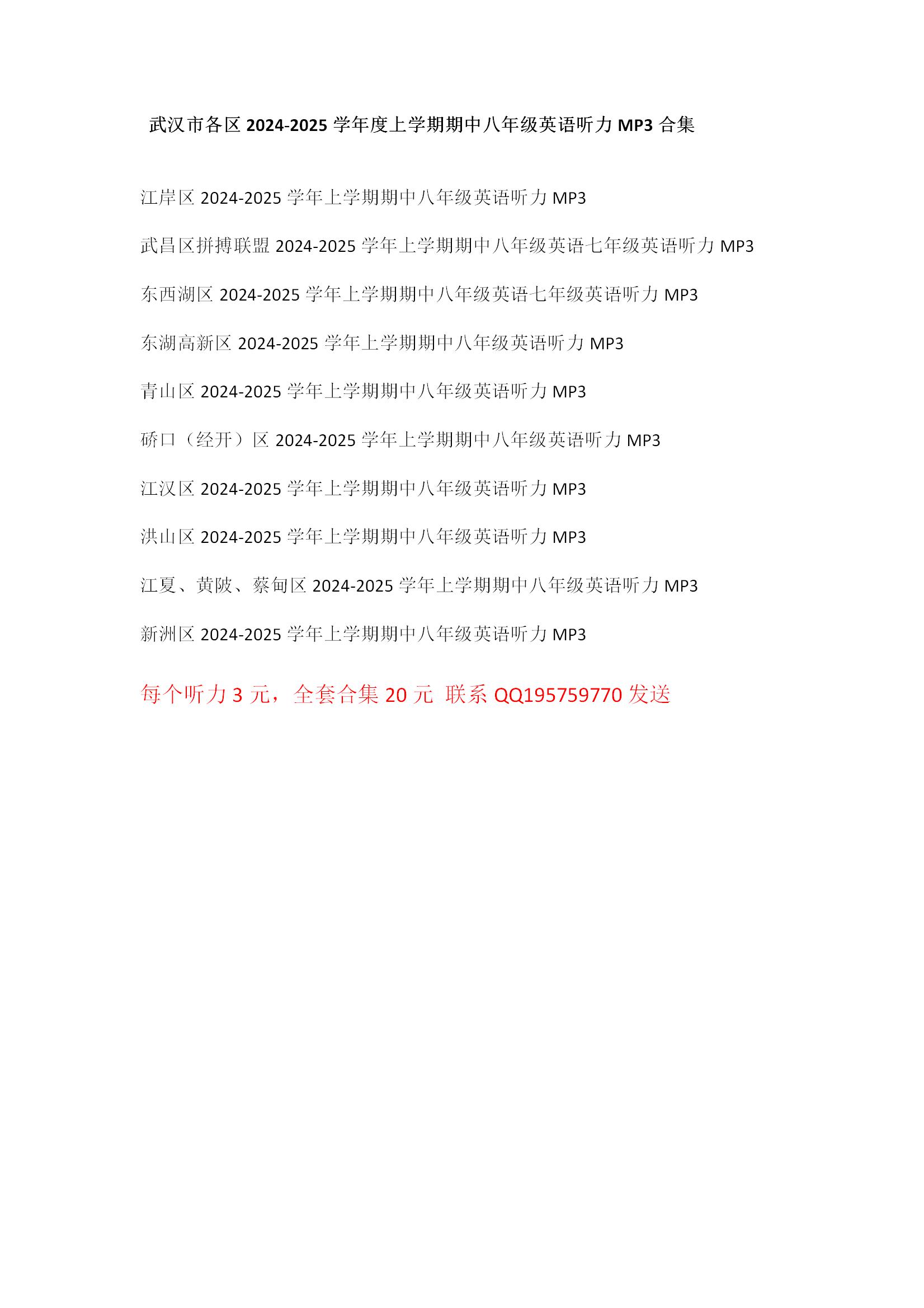 - 1 【听力】武汉市各区2024-2025学年度上学期期中八年级英语听力MP3合集