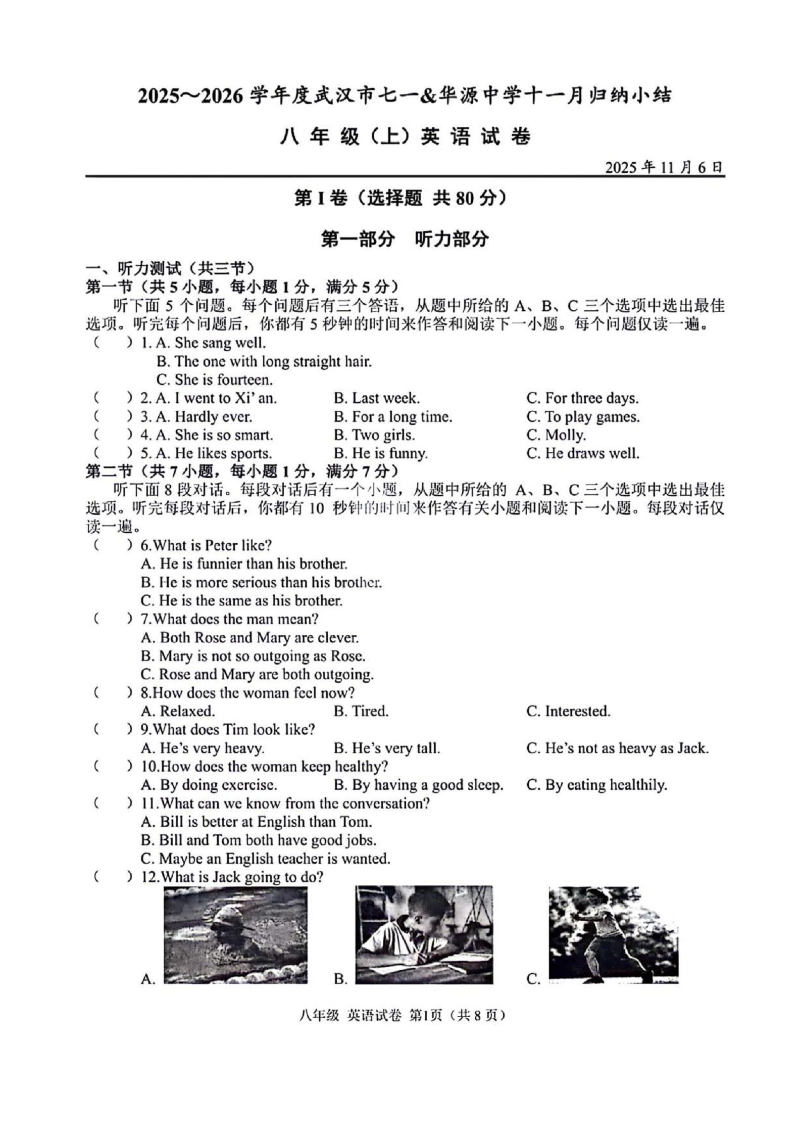- 6 武汉一初2025~2026学年上学期10月八年级英语同步练习听力MP3