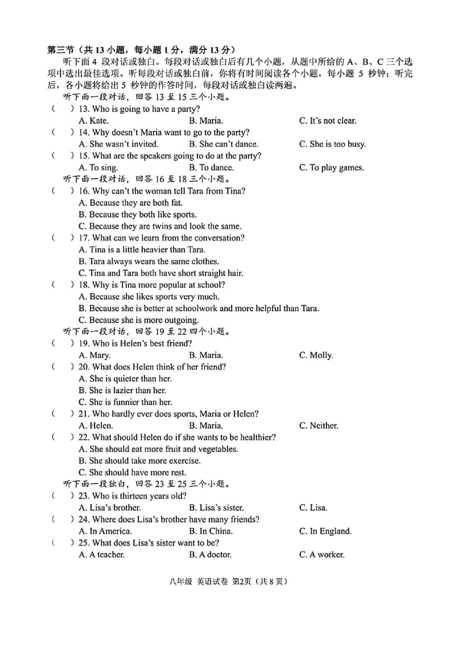 - 2 七一中学2025-2026学年度上学期11月八年级英语归纳小结听力MP3