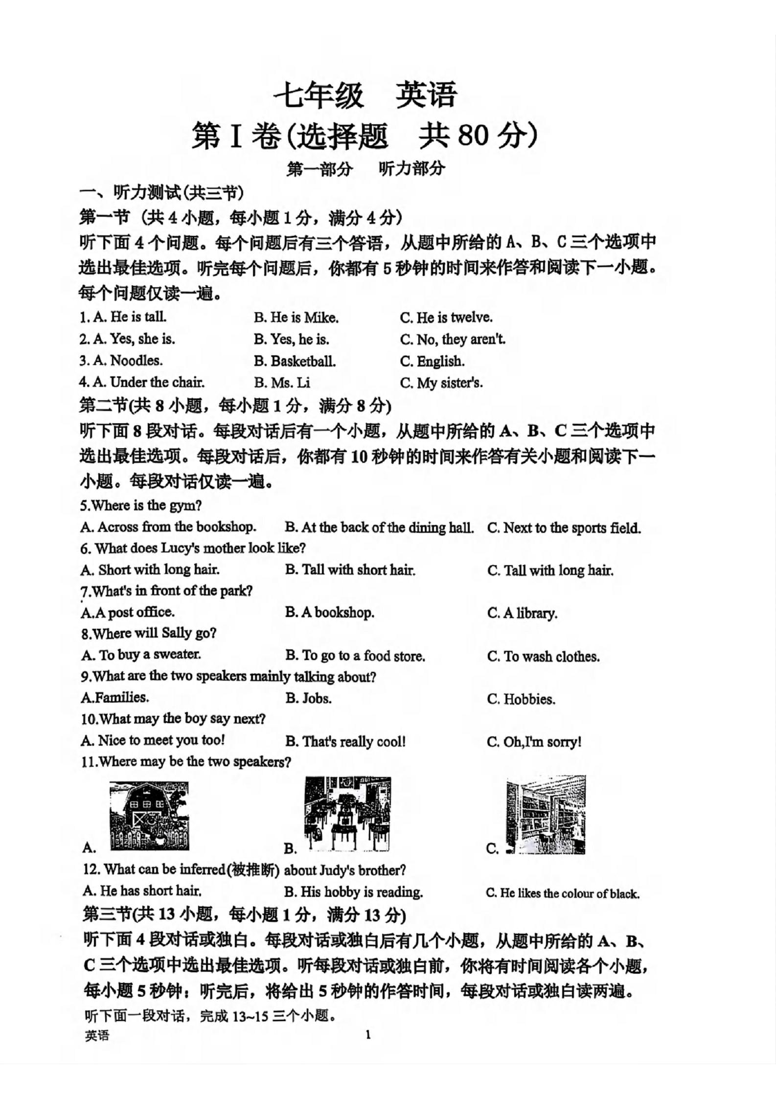 - 1 限时下载】YG英语2025-2026学年七上英语第7期期中 检测题(PDF版含答案及听力)