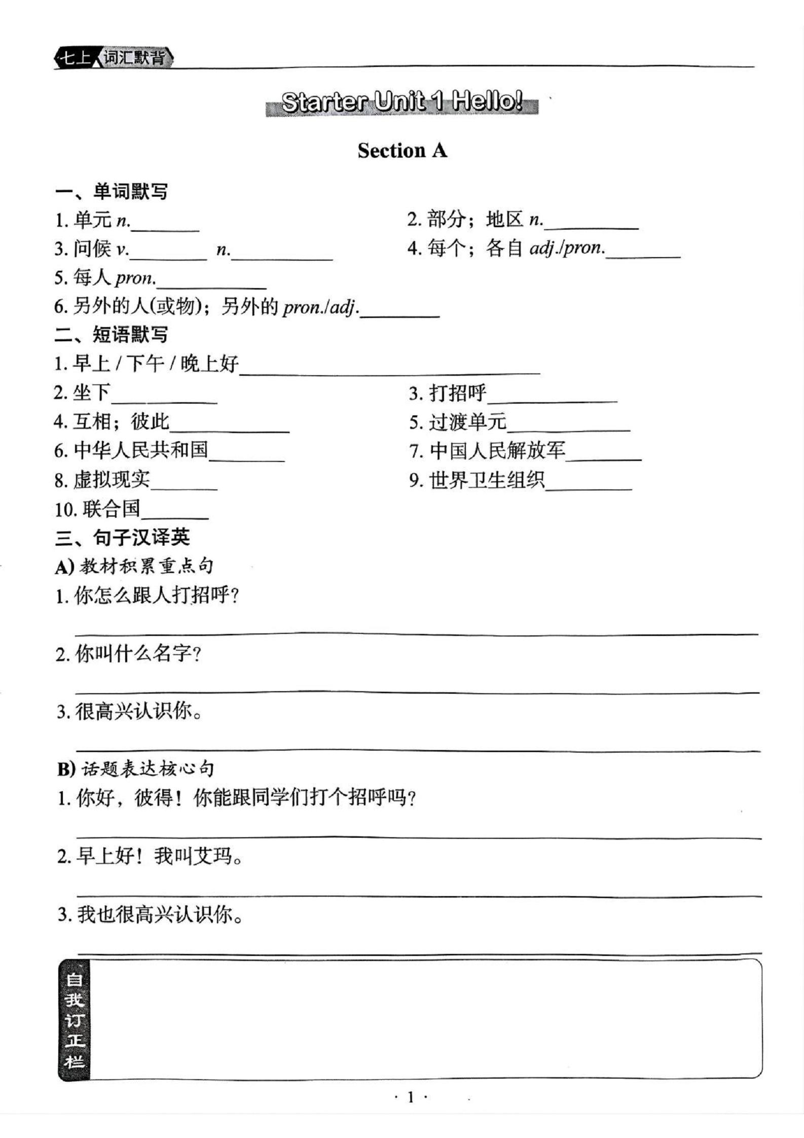 人教版2025秋七上英语词汇默写手册(PDF版含答案)