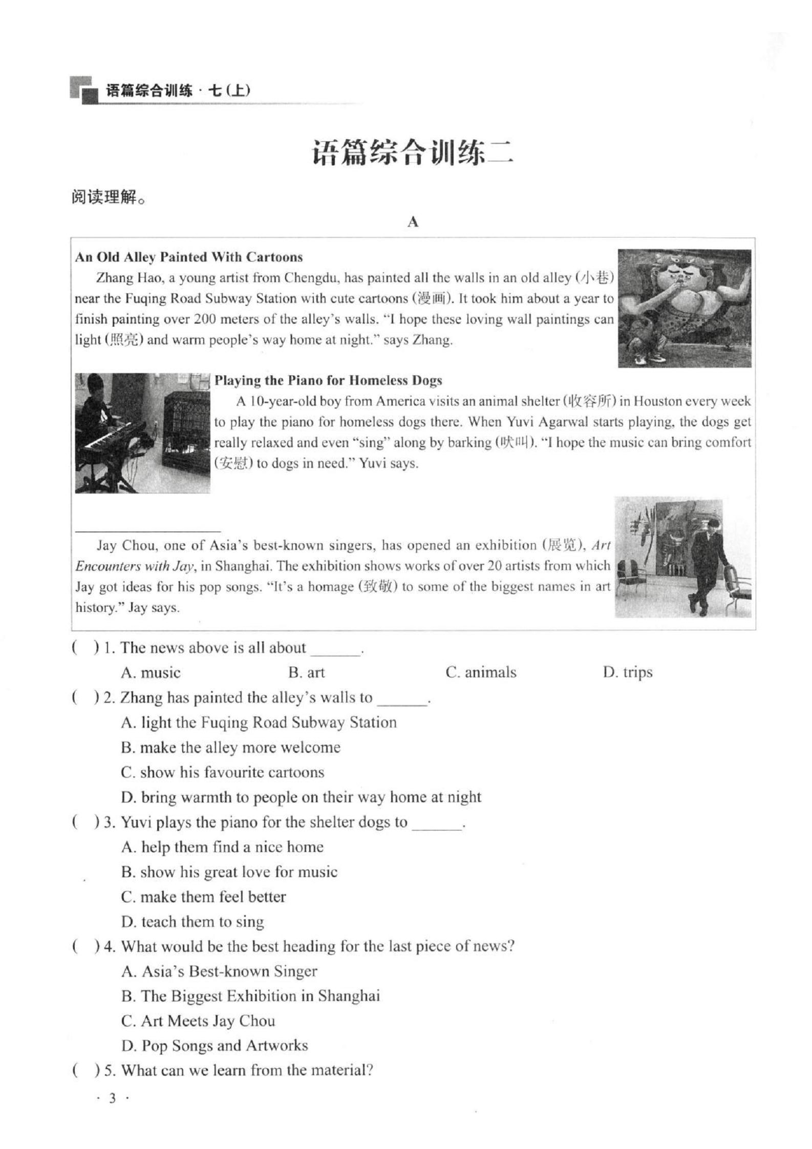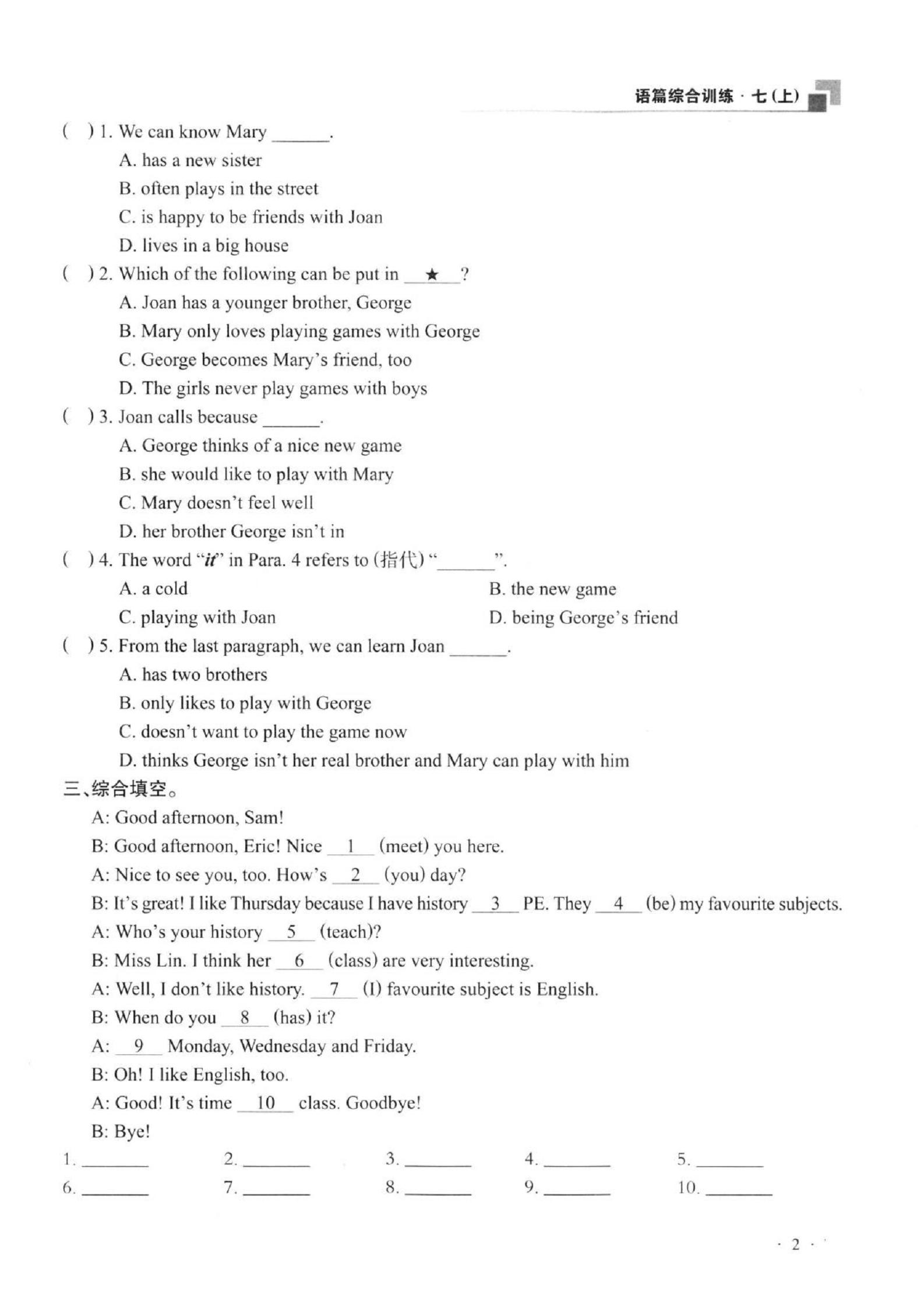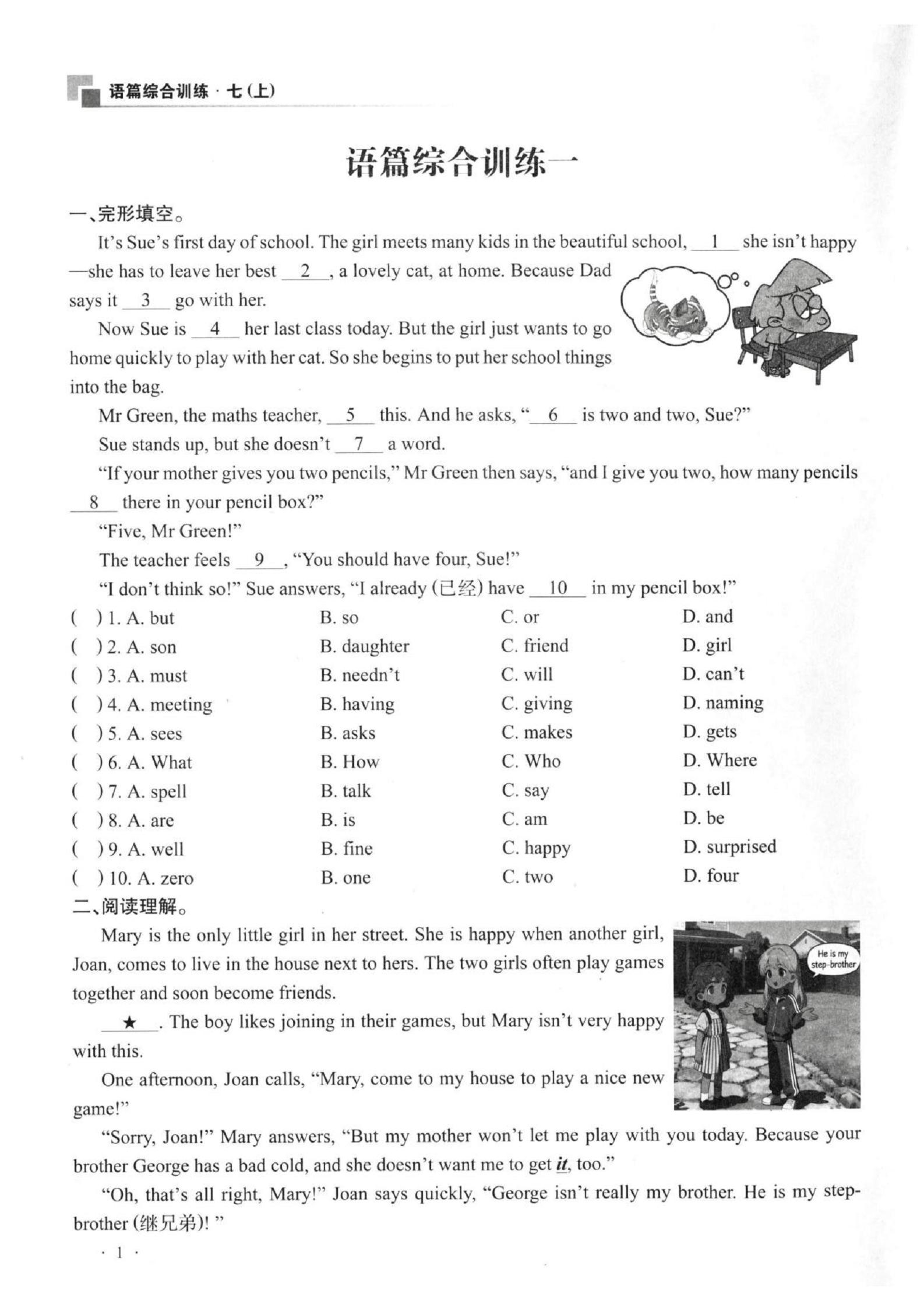 武汉版2025秋七上英语语篇综合训练(PDF版含答案)