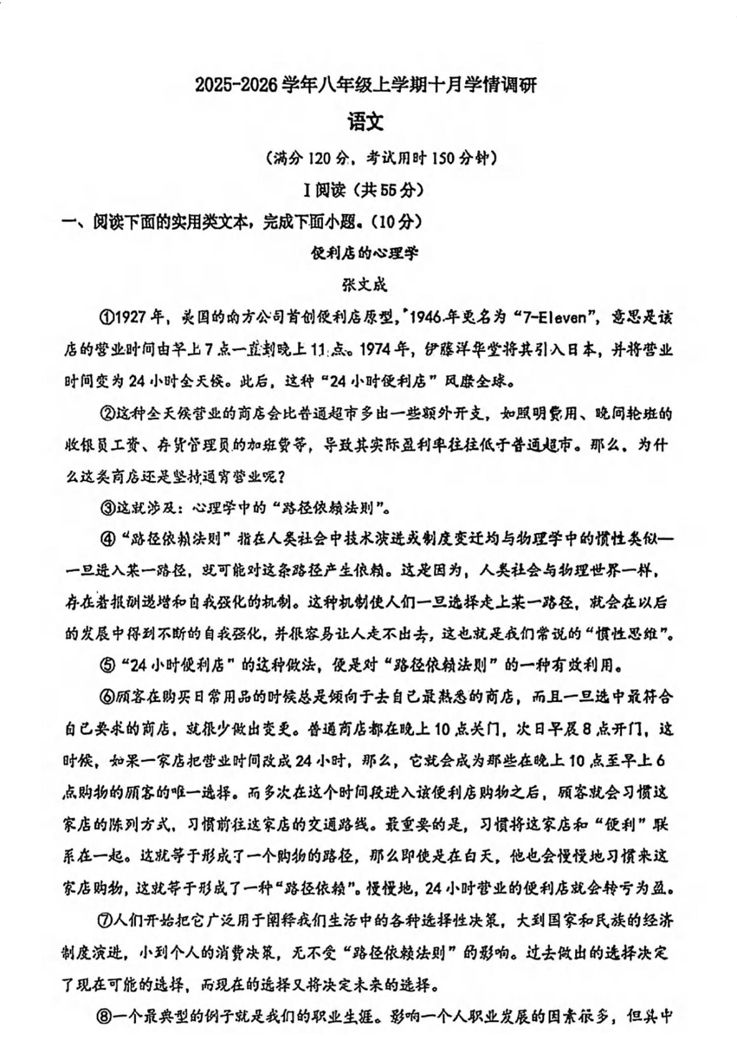 华一寄宿2025-2026学年上学期10月八年级语文试题(PDF版)