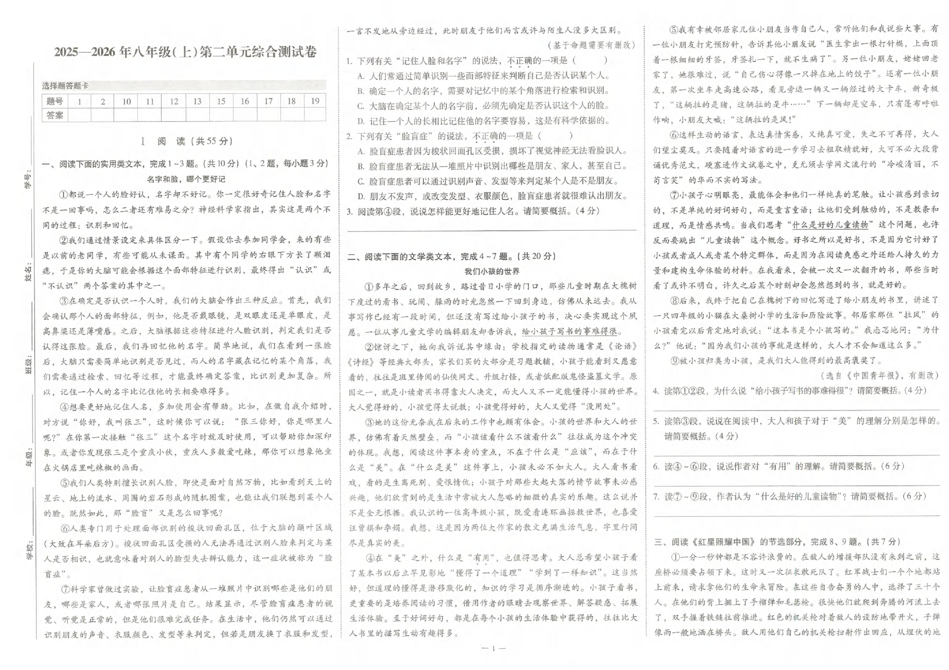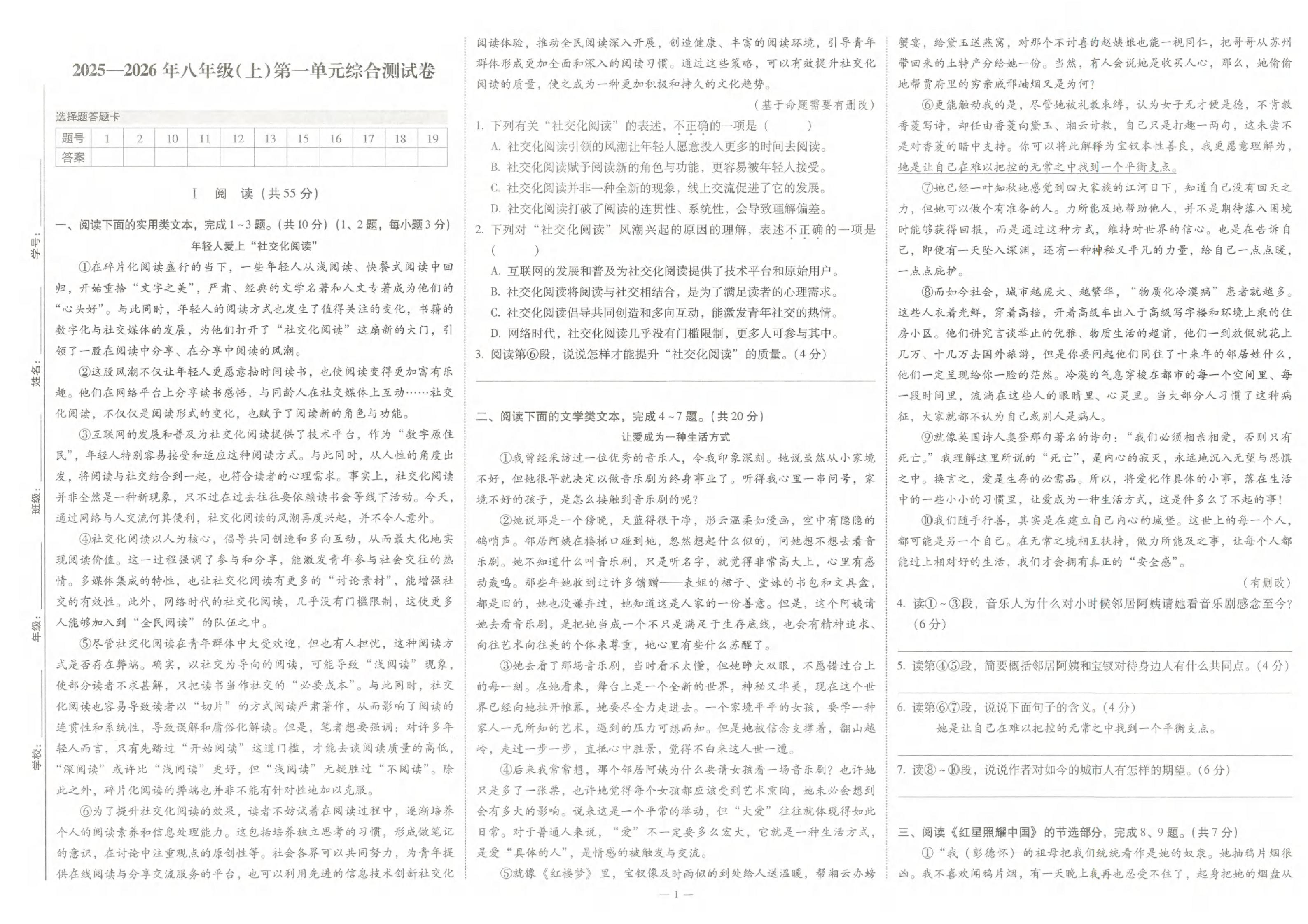 - 1 《轻松导练》2025-2026学年八上语文1-3单元+期中测试卷2套(学生版)