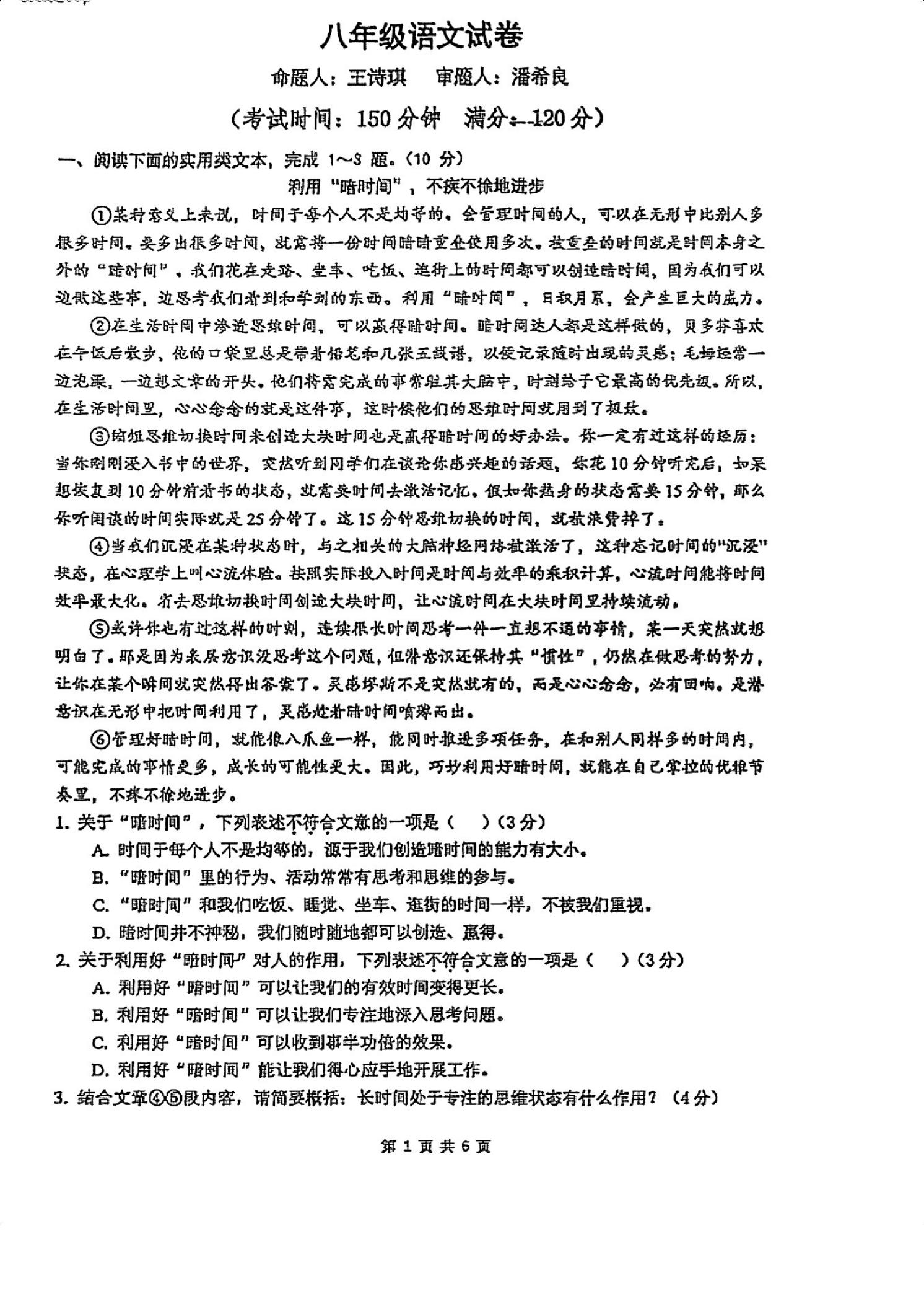 - 5 武汉二中广雅2024-2025学年八上语文限时作业12.27(PDF版)