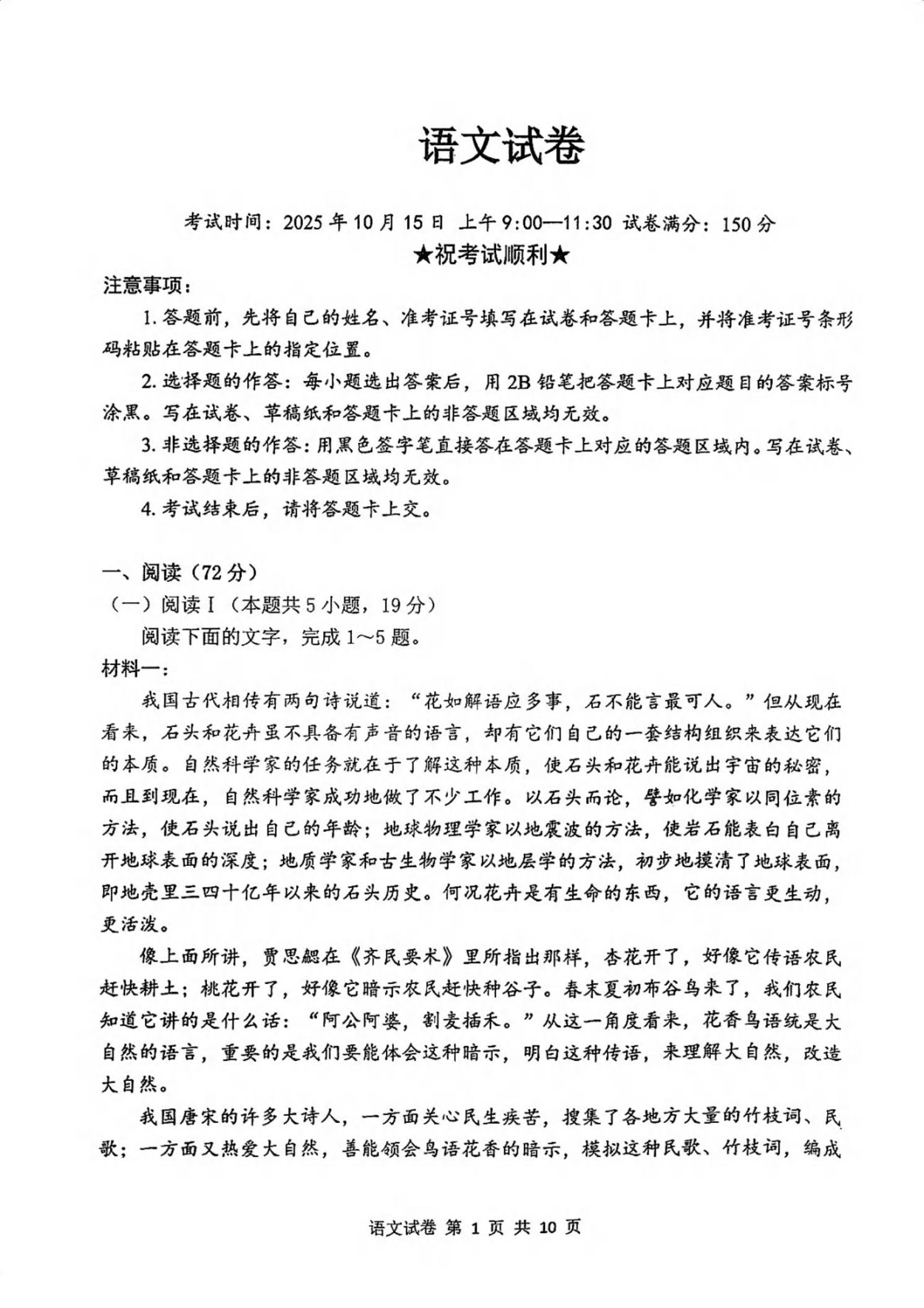 - 1 【免费】湖北腾云联盟2025-2026学年高三上学期10月联考语文试卷(PDF版含答案)